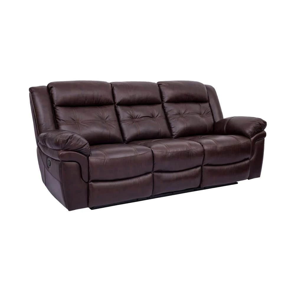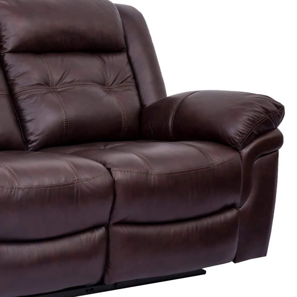 Movie nights will forever be changed with the Marcel Leather couch from Armen Living. This reclining sofa will bring the best of comfort, design and convenience to your home. The Marcel couch is upholstered in genuine leather that exudes a butter soft texture and can easily be cleaned. Genuine leather outlasts other upholstery furniture as it’s a flexible and strong material, making it resistant to tears and punctures. This leather sofa can last for decades if cared for properly and allows you to create a hypoallergenic environment. 1 of the benefits of a manual recliner sofa is the speed at which you can sit up or recline. A manual couch will allow you to recline quickly, whereas a power recliner chair reclines at a slower pace. This can prove to be a nuisance if you need to get up quickly. A manual functionality makes the Marcel is a bit more carefree than a power recliner sofa. They have the flexibility to go anywhere in your house as they do not require access to a power outlet. The Marcel collection features a recliner chair and a reclining sofa available together as a sofa set or individually. The Marcel Reclining Sofa from Armen Living is available in beautiful dark brown genuine leather upholstery and is a perfect addition to your living room, mancave, den or home theater.