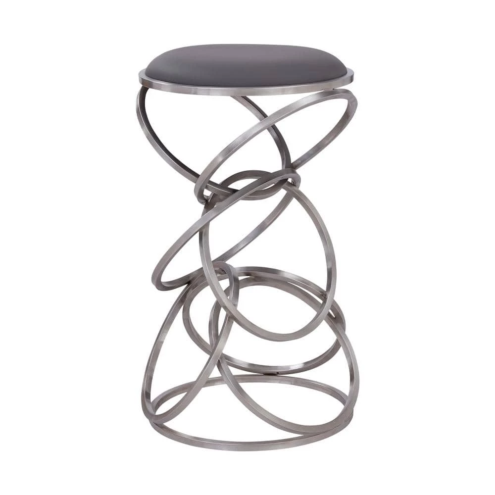 - Medley contemporary backless Bar Stool with brushed stainless steel finish and grey faux leather
