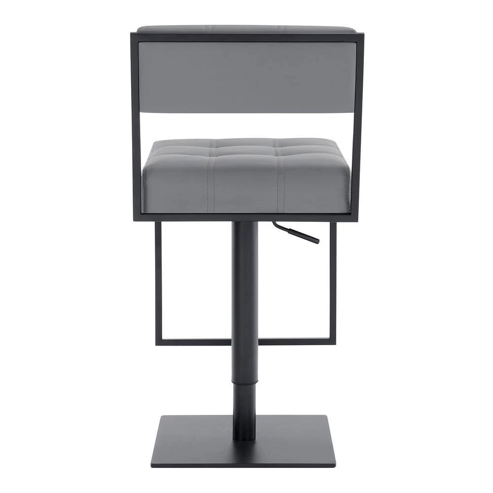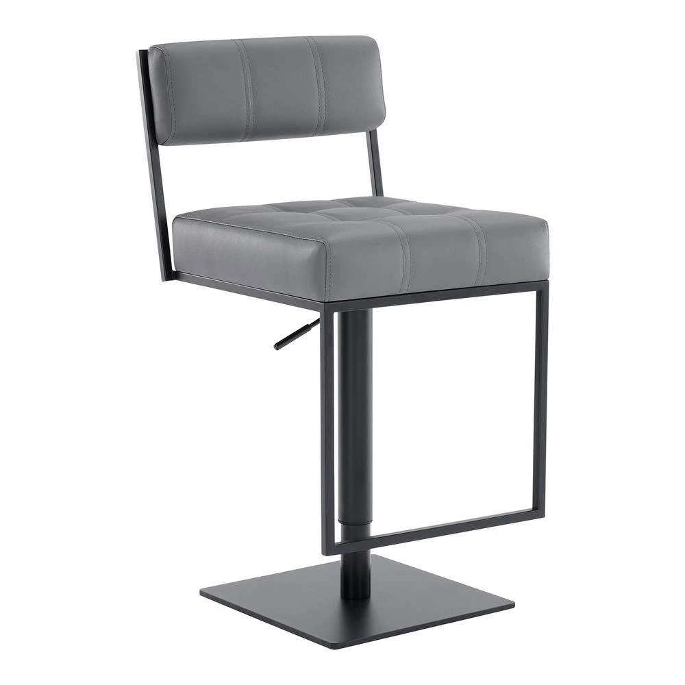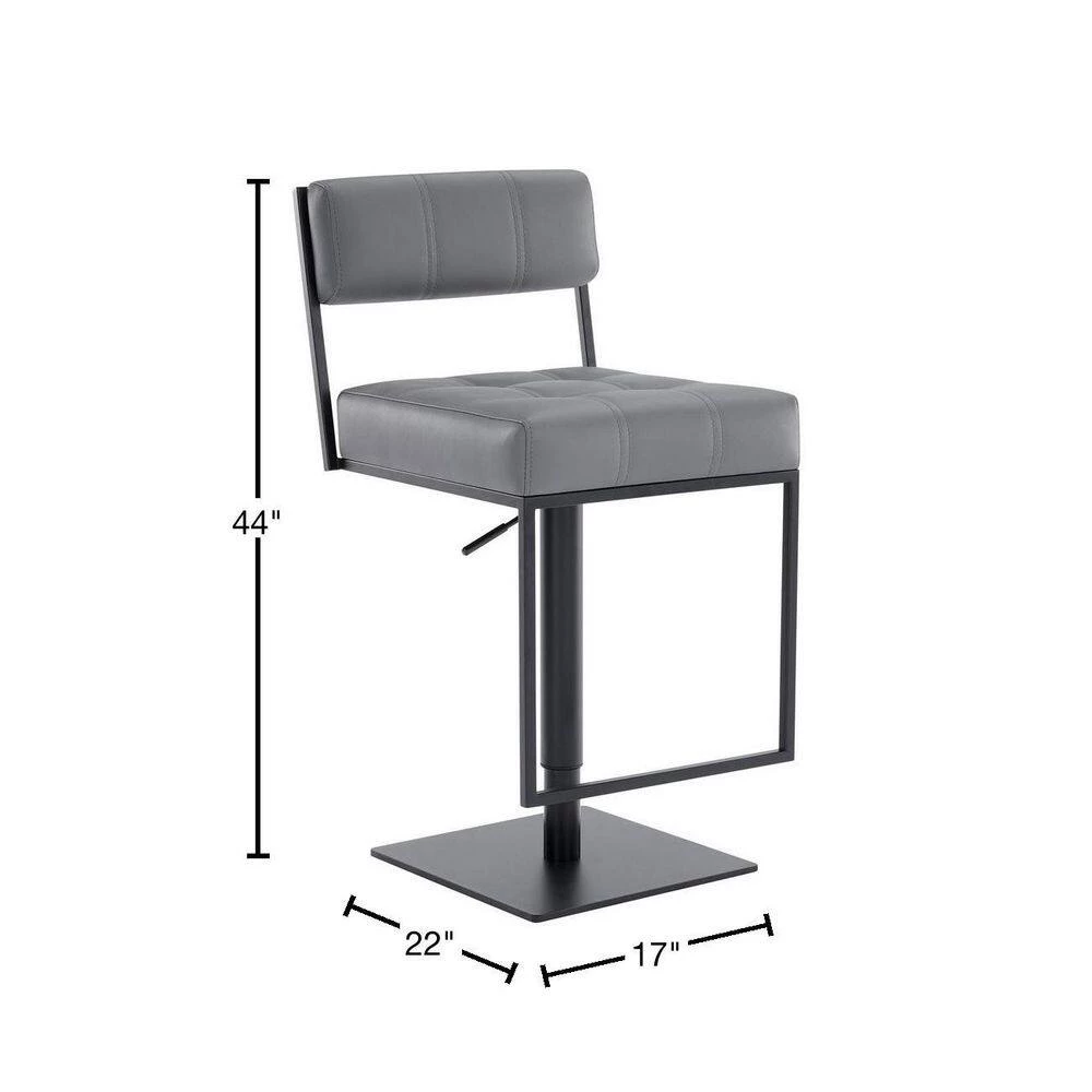 The Michele adjustable Bar Stool will impress your guests with its elegant contemporary design and practicality. This Bar Stool features appealing modern style with sleek lines and soft shapes. This stool has a comfortable seat upholstered in Grey Faux Leather. A sturdy matte black frame and base are stable and bring the perfect sense of balance and functionality. There is a comfortable foot rest; you can adjust the height according to your preference. The Michele modern Bar Stool will add a touch of distinction and elegance to your home bar or dining room with its ultra-modern design, clean lines and stylish shapes.