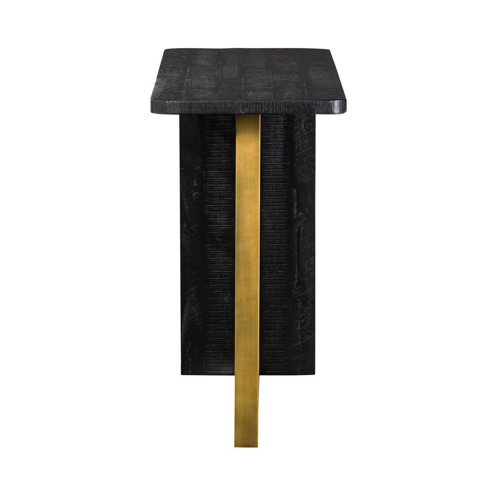 Accent your home with the Armen Living Monaco Black Wood Console Table with Antique Brass Accent. This beautiful narrow console table featured a T-shape base with antique gold diagonal lines design accompanied with acacia wood to ensure stability of the product. The slim silhouette exudes transitional styling cues with a hint of mid-century and contemporary blend. Organization and decoration come together with this sleek and skinny console table, place in the entryway for a functional key hub, behind the sofa in the living room or in any open concept living space. This item ships in one box, ready to be assembled hassle-free with detailed instructions. We stand by the quality, the craftsmanship, and the integrity of our product by offering a 1-year warranty for all our products. We want our customers to enjoy our product and we will always be there to help with our top-notch customer service support.