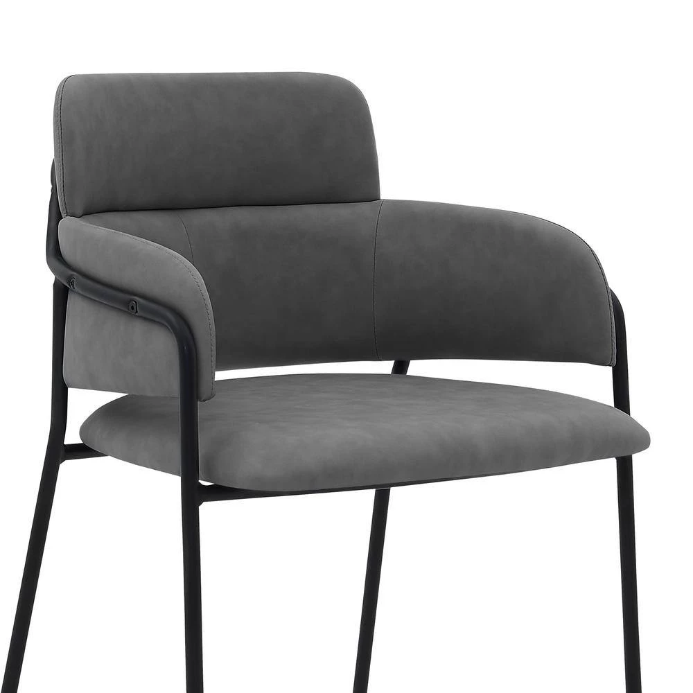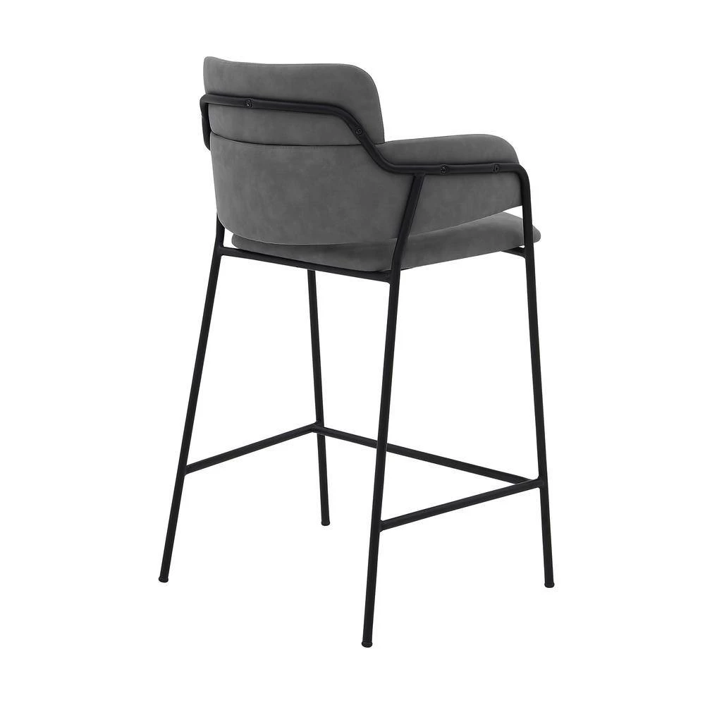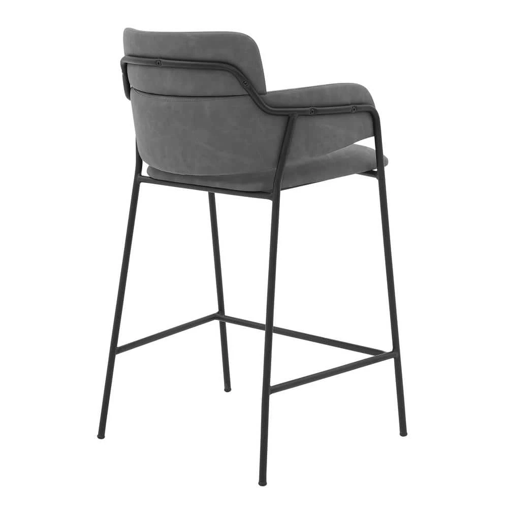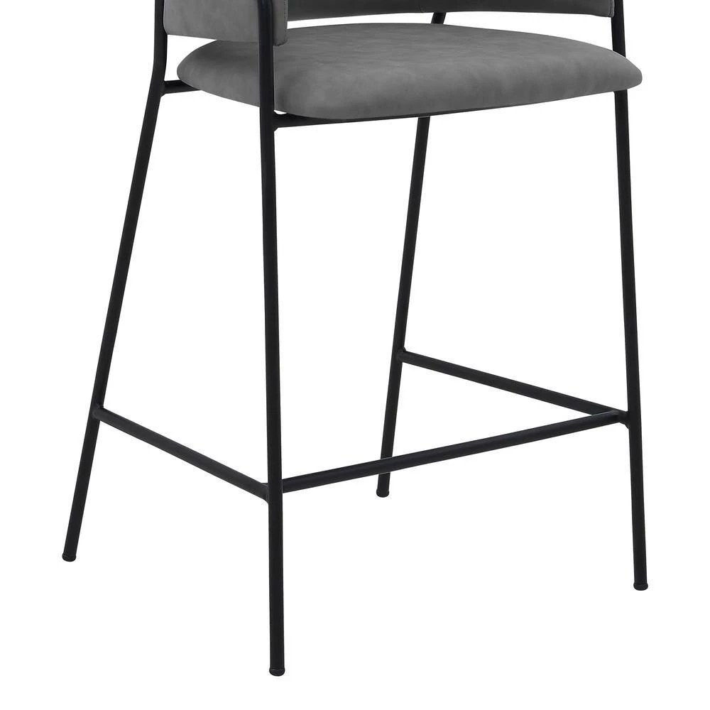 Add a touch of modernity to your home with the Armen Living Oshen Modern Faux Leather and Metal Counter Height Bar Stool. This bar stool is the next great addition to bring your beautiful home. The tall black metal legs extend around the back of the stool to create the frame, forming a streamlined and durable piece of art. The faux leather upholstery is brilliantly wrapped around the unique rounded seatback, continuing all the way into the arms of the stool. The Oshen features an astonishingly soft foam-padded cushion. The metal frame of the Oshen is built with durability and sturdiness in mind, giving you years of enjoyment. The Oshen is available in your choice of light blue and gray faux leather.