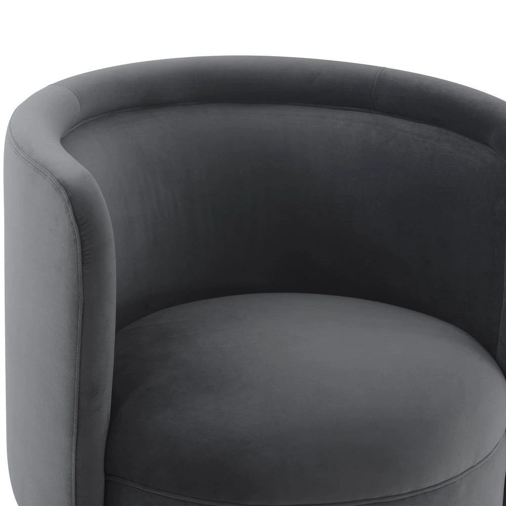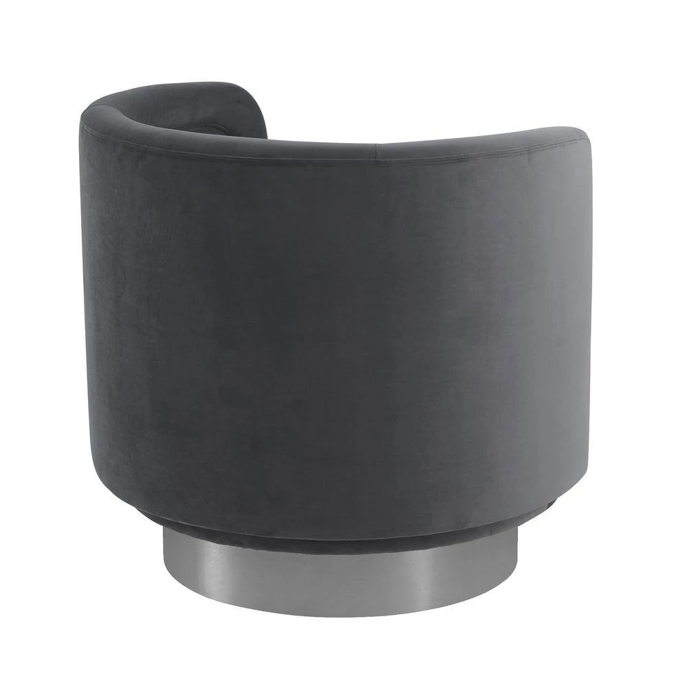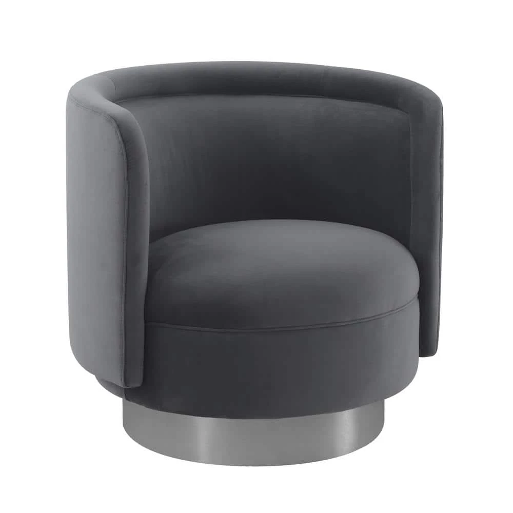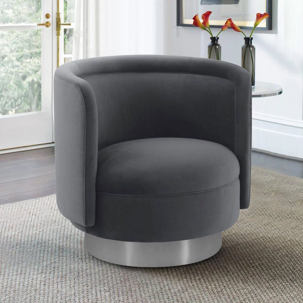 The wonderful Peony Chair from Armen Living is a visual spectacle. The rounded, high chair back encapsulates your body to make you feel comfortable and secure. The foam-padded seat cushion is plump and soft, making this your new favorite chair in the house to lounge in. The Peony has a very special feature that brings a swivel function to this already fantastically designed chair. Swivel in a full 360-degree motion for maximum mobility. The rich, thick gold brushed base is an eye-catching addition. The Peony is available in your color choice of Blush, Natural, and Gray.