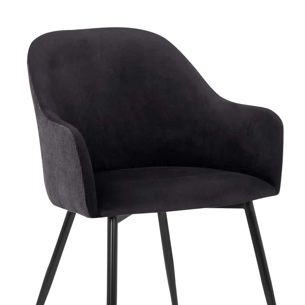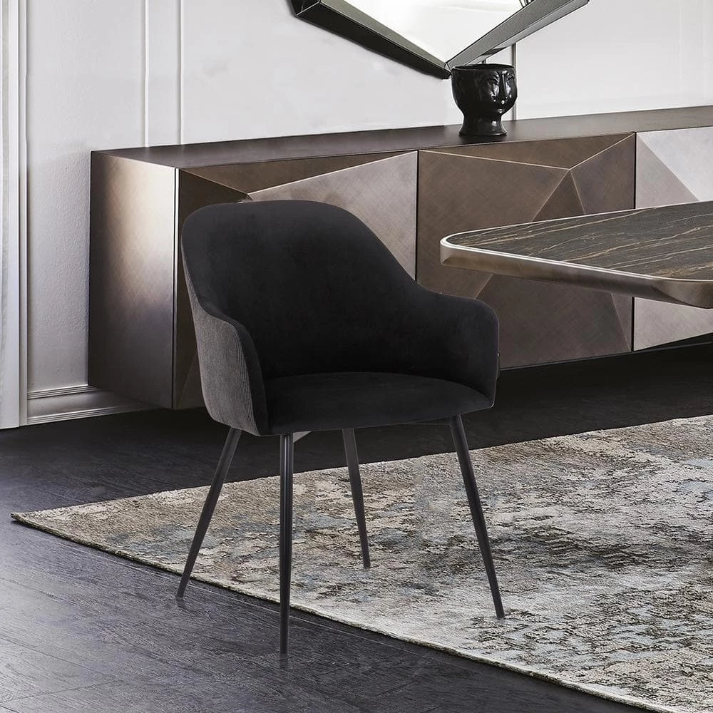 The Armen Living Pixie Black and Dark Grey Fabric Dining Room Chair with Black Metal Legs is a welcome addition to any home regardless of existing design theme. This universal can easily be used in your dining room or kitchen as a dining chair, your home office, bedroom, or living room as accent chairs. The soft fabric upholstery covers a high-density foam cushion that provides comfort for long sitting periods but also features ergonomic properties to keep your back healthy and properly aligned. The black metal legs give the chair a modern look and make this chair a truly stand out piece of furniture that will provide comfort and durability for many years to come. The Pixie Fabric Dining Room Chair with Black Metal Legs is available in your choice of Black with a Dark Grey Upholstered back, Dark Grey with a Black Upholstered back, or a 2-tone Teal upholstered option, all featuring black metal legs.