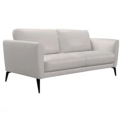 Genuine Dove Grey Leather Contemporary Sofa with Black Metal Legs by Armen Living