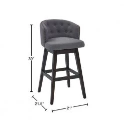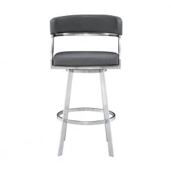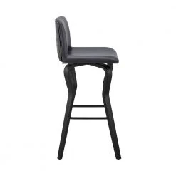 Gerty 40 in. Bar Height Low Back Swivel Grey Faux Leather and Black Wood Bar Stool by Armen Living