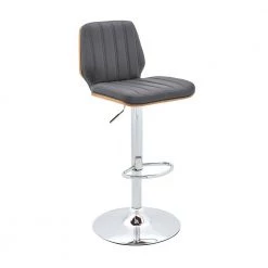 Sabine Gray Adjustable Swivel Faux Leather with Walnut Back and Chrome Bar Stool by Armen Living