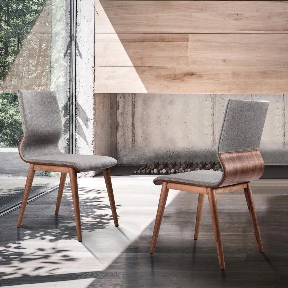 - Robin modern side chair in walnut wood finish and gray fabric