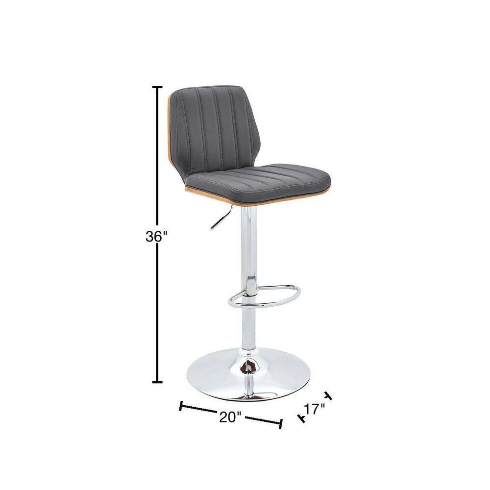 Bring modern style and exceptional comfort to your home with the Sabine Gray Faux Leather and Chrome Base from Armen Living. The high-grade faux leather upholstery features a textured-lined seat back, giving the Sabine a refined image. The thick, plush foam-padded back and cusion is magnificent on your body and will keep you comfortable and relaxed for as long as you’re sitting. The Sabine features a 360° swivel function for full mobility and a hydraulic lift to raise your stool to the perfect level. The tough and durable metal column and accents are crafted to last and give you years of enjoyment. The Sabine is available in your color choice of grey or cream faux leather with a chrome base or grey faux leather with matte black base.