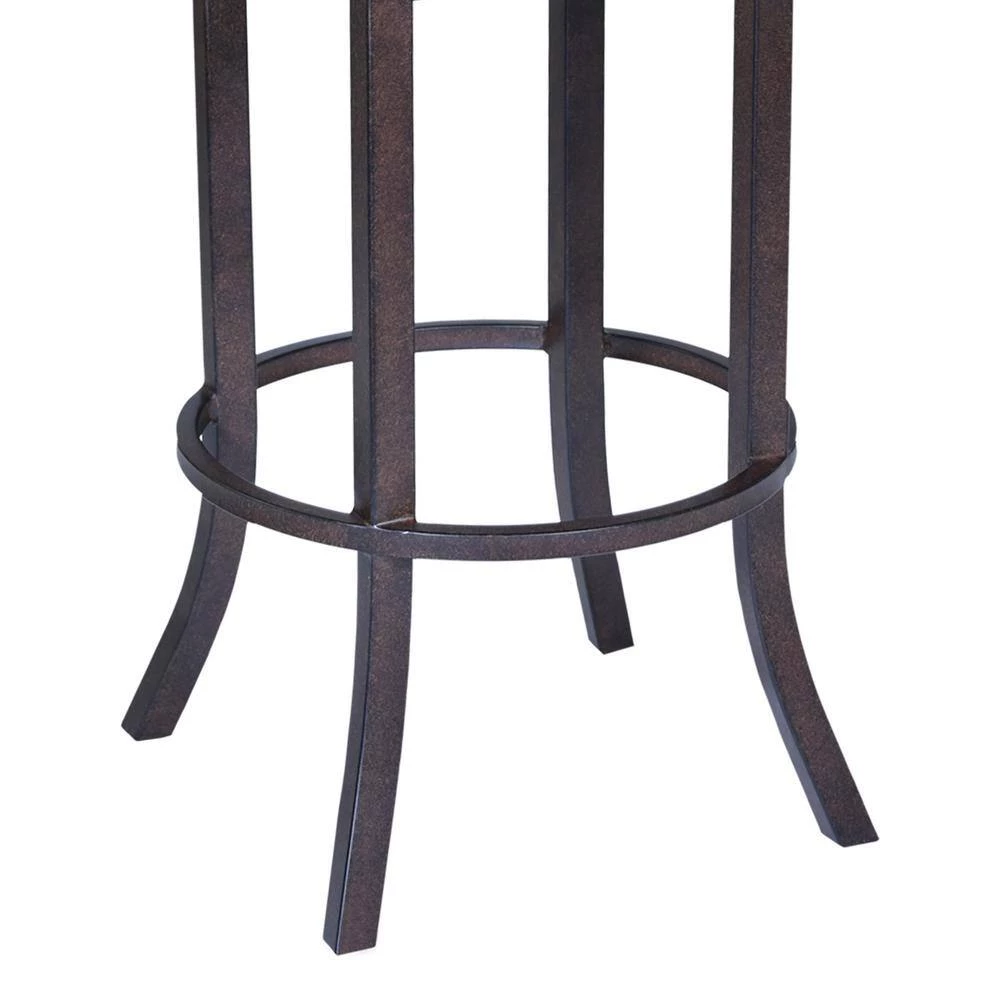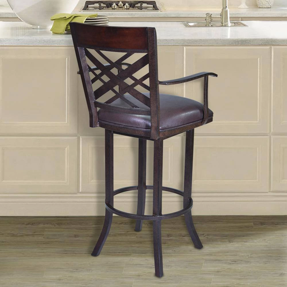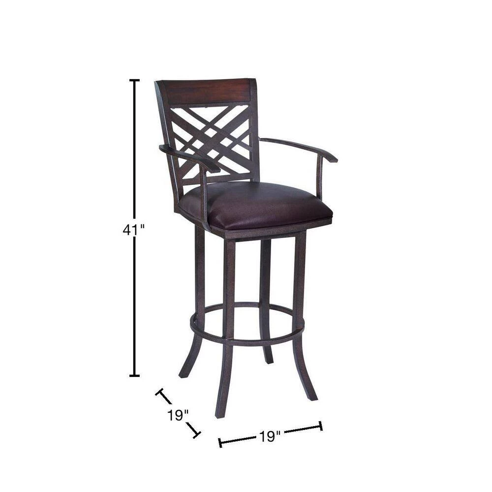 Add elegance and charm to your bar or counter with this swivel stool from Armen Living. The Tahiti transitional swivel arm barstool will bring grace and refinement into your home. With a tropical thatched and weaved look on the backrest, there is an unmistakable look of the islands. When you combine this with the beautiful Auburn Bay finish and simple Brown faux leather, this modern take on an island-style barstool completes any island bar look you’re going for. It has secure armrests and footrest that provide additional comfort and convenience. The Tahiti transitional barstool can be used in a variety of applications, and even offers the ability to swivel for added accessibility. Available in 26″ counter height or 30″ bar height. This product ships in one box with an easy and quick set up. We stand by the quality, the craftsmanship, and the integrity of our product by offering a 1-year for all our products.