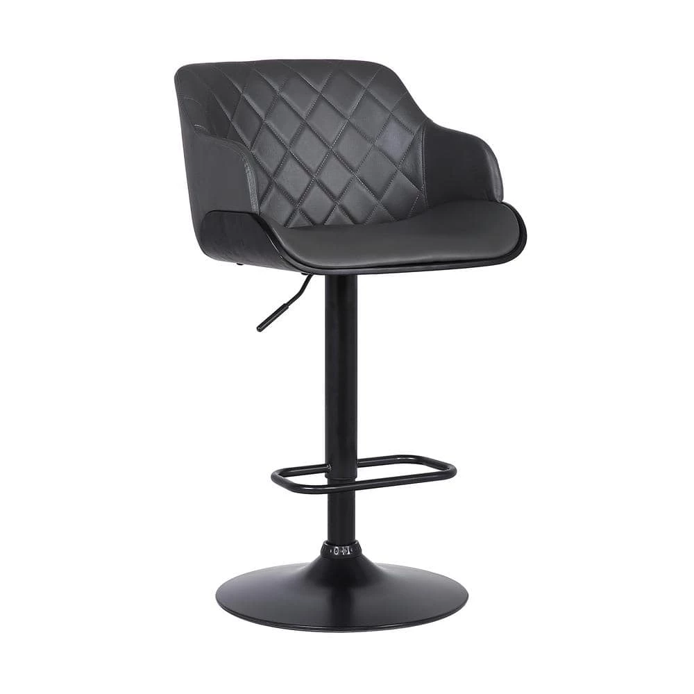 The Armen Living Toby contemporary Adjustable barstool features a medium height seat design complete with armrests for optimal user comfort and support. This impressive stool comes with a steel column base that assures durability without compromising on the Stool’s elegant aesthetics. The added footrest adds balance to the piece by serving as a visual accent to the plush, foam padded seat. The Toby’s diamond textured, faux leather seat features a Poplar wood base and 360-degree swivel function, allowing for a wide range of movement while seated. The Adjustable height setting on the bottom of the seat allows one to easily transform the stool from counter to bar height, making it adaptable for both the kitchen and the home bar setting. This exceptional stool is available in 3 style choices; A black powder finished design with a sleek grey faux leather upholstered, black brushed wood seat as well as two chrome finish designs sporting stylish walnut wood seat frames, available with black or grey faux leather upholstery. We stand by the quality, the craftsmanship, and the integrity of our product by offering a 1-year warranty for all our products. We want our customers to enjoy our product and we will always be there to help with our top-notch customer service support.