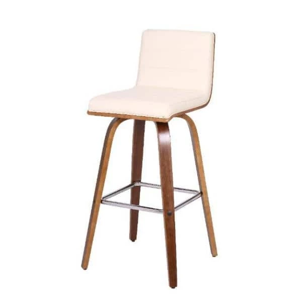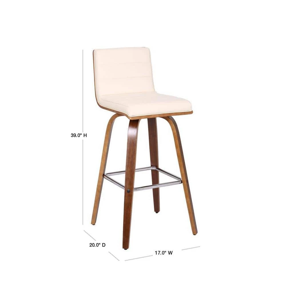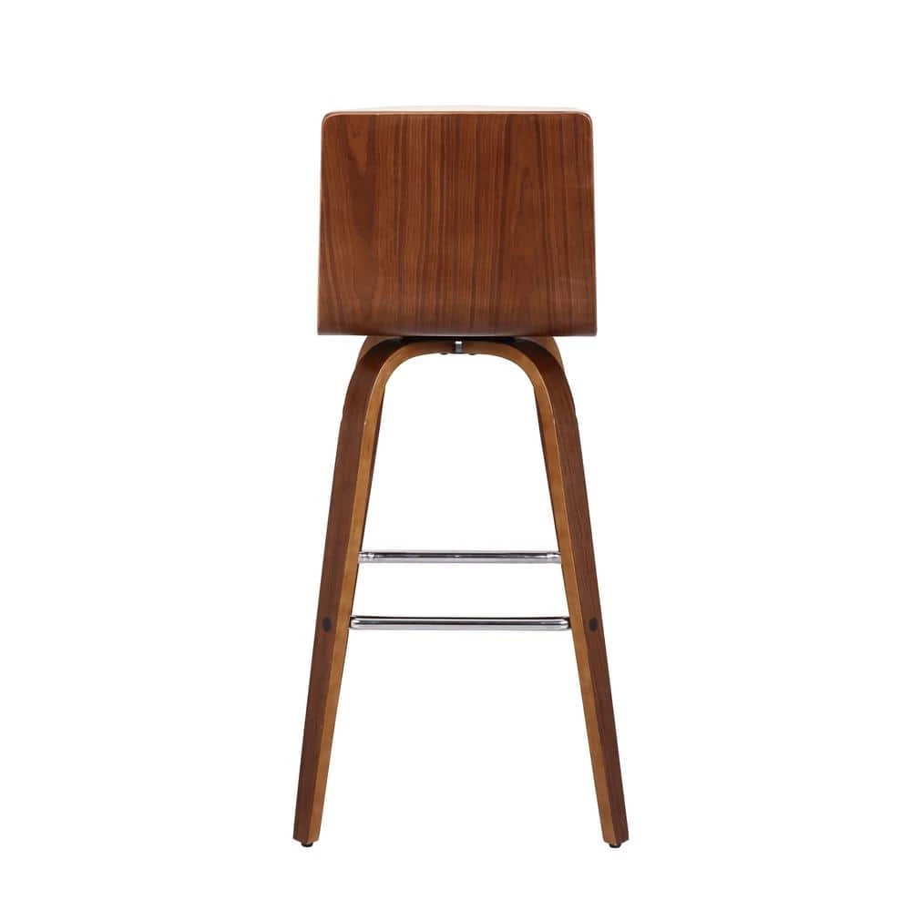 Indulge in luxury with the Vienna contemporary Swivel barstool by Armen Living. It is beautifully designed with a sturdy metal framed footrest in expertly crafted in curved Walnut wood finish, upholstered with gray faux leather upholstery and Walnut Back. This piece provides both versatile style and comfort with a Mid-Century Modern design that can easily be integrated into your homes current decor. This item ships in one box, ready to be assembled hassle-free with detailed instructions. We stand by the quality, the craftsmanship, and the integrity of our product by offering a 1-year warranty for all our products. We want our customers to enjoy our product and we will always be there to help with our top-notch customer service support.