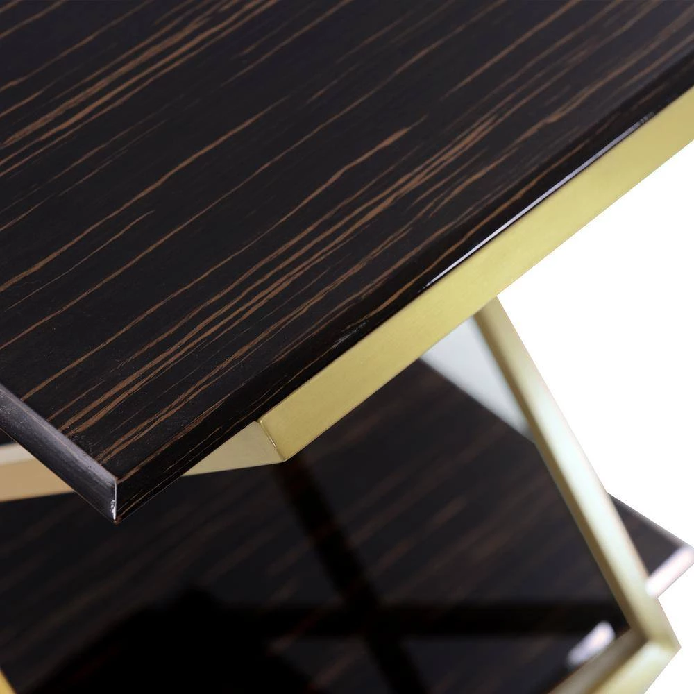 The Westlake Dark Brown Wood and Brushed Gold End Table from Armen Living is what your living room needs to take your home decor to the next level. The Westlake table features dual resting shelves that maximize your storage space – giving you ample surface area to place your favorite personal items or decorative centerpieces. The wood of the End table is waterproof and wear-resistant, fighting off everyday wear and tear and giving you years of enjoyment. The craftsmanship shown through the design of the table is very apparent – the rich gold accents, the unique x-shape frame, and the gorgeous wood all contribute to this special piece.