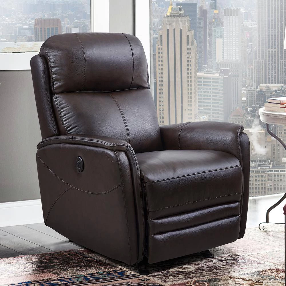The Armen Living Wolfe Contemporary Top Grain Leather Power Recliner Chair with USB Charging Port features a combination of wood and metal to bring you an exceptionally durable product. The Wolfes comfortable 2.2 density, semi-firm foam cushion provides you with a soft seat and a firm back for added lumbar support. The Wolfes stylish hand-stitched details serve as a nice aesthetic touch to the already luxurious recliner. Perhaps the most impressive feature of the Wolfe is its steel reclining mechanism, which allows the user to easily shift positions while seated. An excellent choice for the living room, bedroom, den, or home office, the Wolfe is certain to meet all your expectations. This recliner is available in 2-stylish upholstery options; Black and Dark Brown Top Grain Genuine Leather. We stand by the quality, the craftsmanship, and the integrity of our product by offering a 1-year warranty for all our products. We want our customers to enjoy our product and we will always be there to help with our top-notch customer service support.